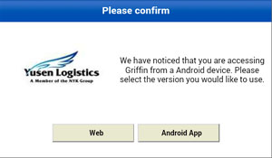 Users accessing Griffin through an Android device will get the following prompt below.